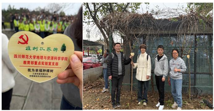 2026年3月12日下午,在全国第48个植树节来临之际,西南土地资源评价与监测教育部重点实验室党支部(以下简称“实验室党支部”)与成都市锦江区三圣街道幸福社区党委,联合举办了“经纬绘新貌,同心筑幸福”植树实践活动。此次活动旨在推动科研成果转化与地方服务深度融合,实验室师生党员、社区党员群众及校友代表共同参与,为“经纬·幸福林”再添新绿。