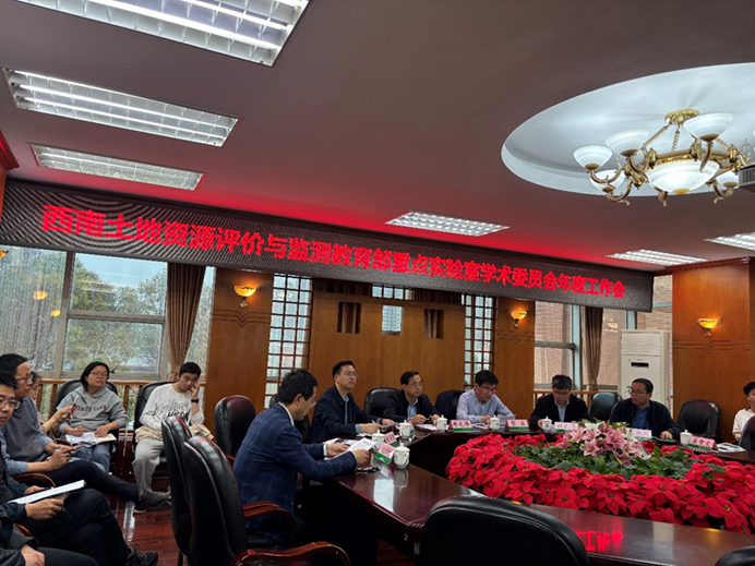 2026年4月10日下午,西南土地资源评价与监测教育部重点实验室(以下简称“实验室”)第二届学术委员会第四次会议在狮子山校区成功召开。会议审议了实验室评估期工作总结与2025年度进展,为迎接新一轮教育部评估奠定坚实基础。蒋文涛副校长、实验室学术委员会委员、学校相关职能部门负责人、地理与资源科学学院负责人及实验室全体成员参加会议。_